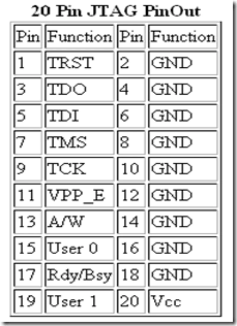 最初制定的20脚的Jtag头,管脚序号与信号的对应关系如下: