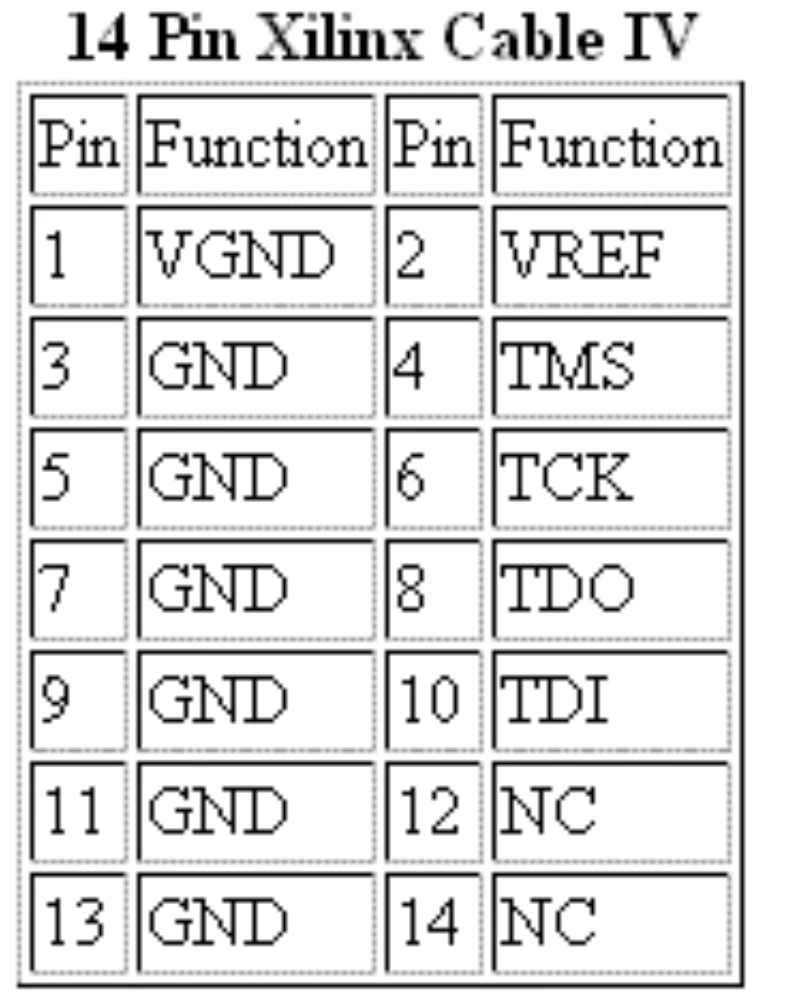 Xilinx的Cable IV下载线14脚的Jtag头管脚图: