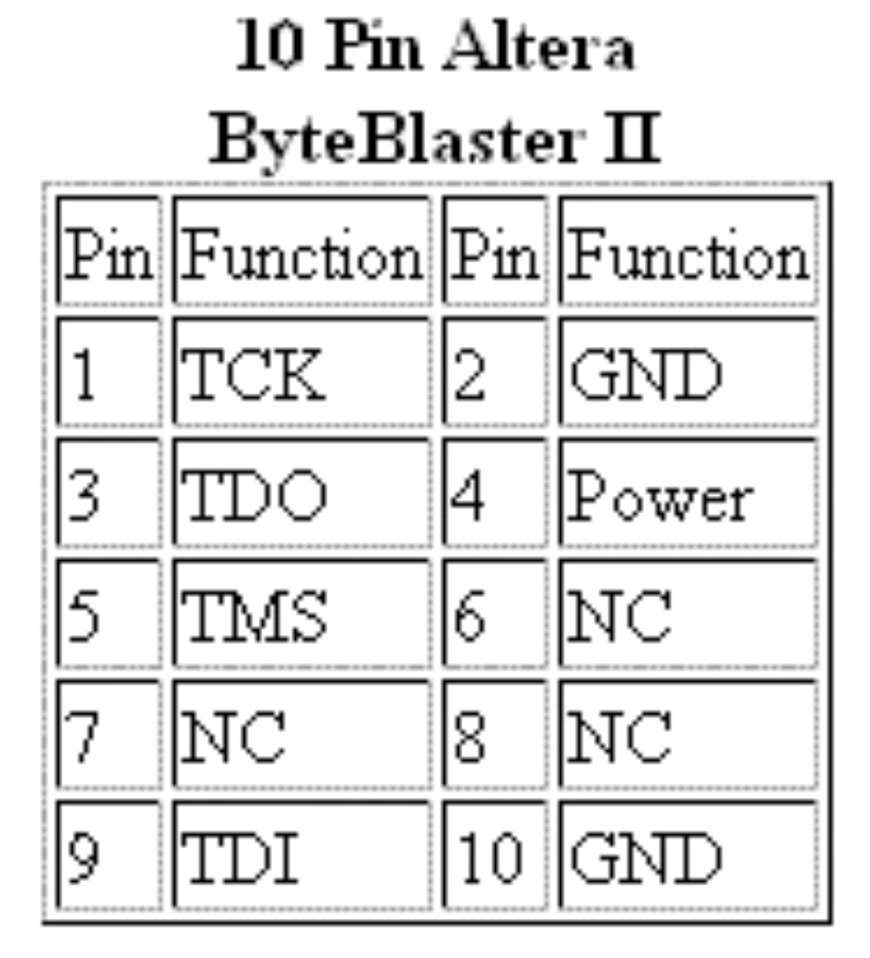 Altera的ByteBlast-II下载线的Jtag头管脚图: